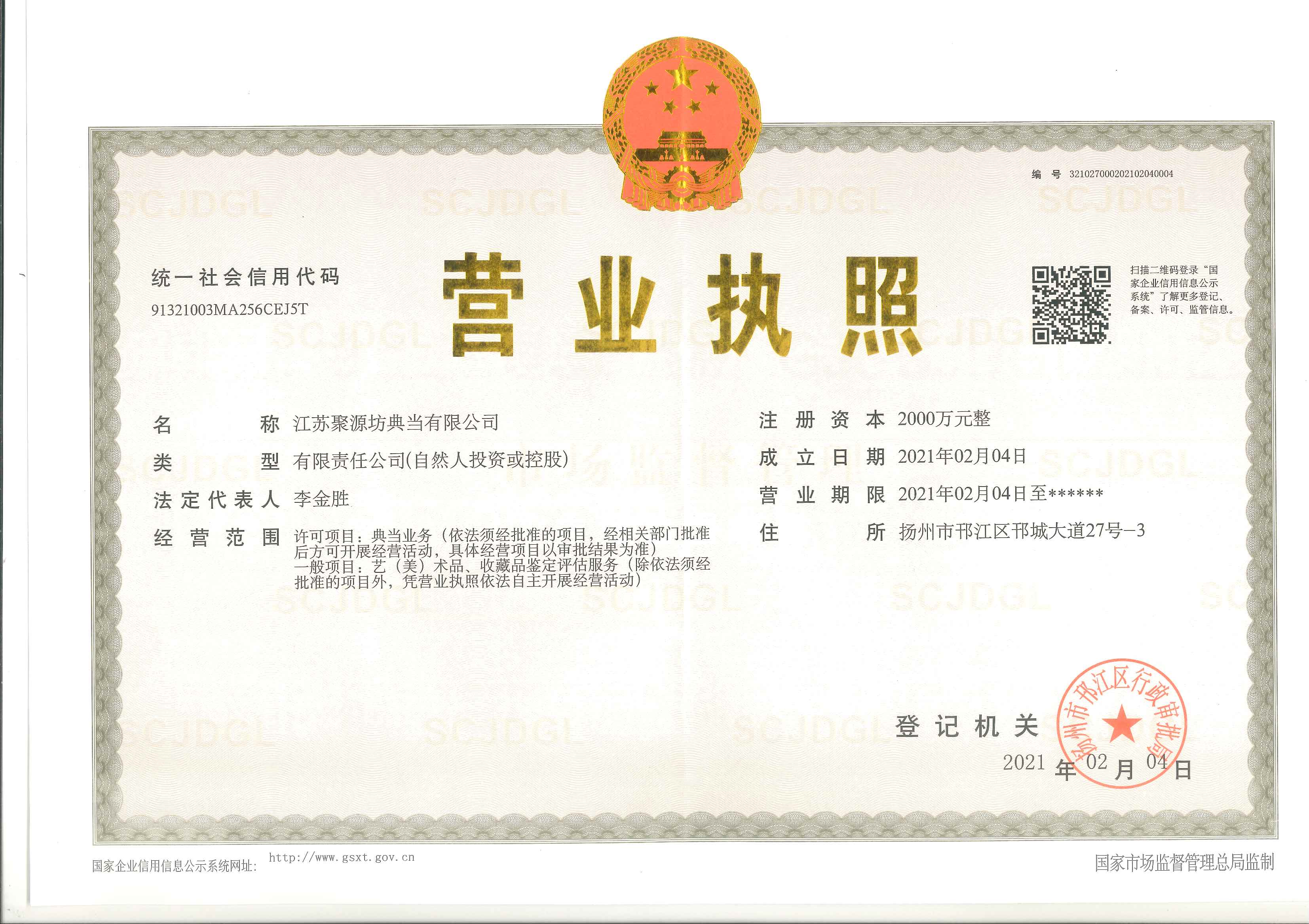 我司投資成立的江蘇聚源坊典當有限公司開業啦